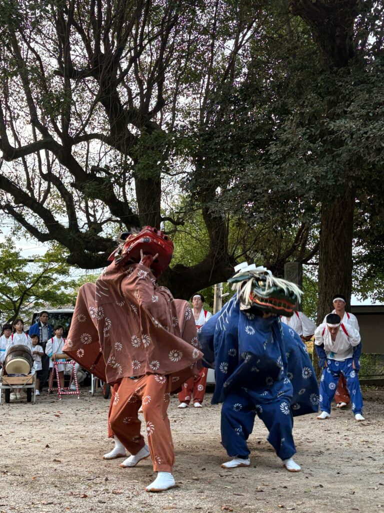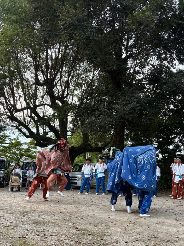 コロナ禍に開催を自粛されていた忠隈宝満宮の獅子舞も再開し2年目になりました。以前の様な活気を取り戻そうと地域の方々の呼びかけで今年も10月12日(日)に賑やかに執り行われました。